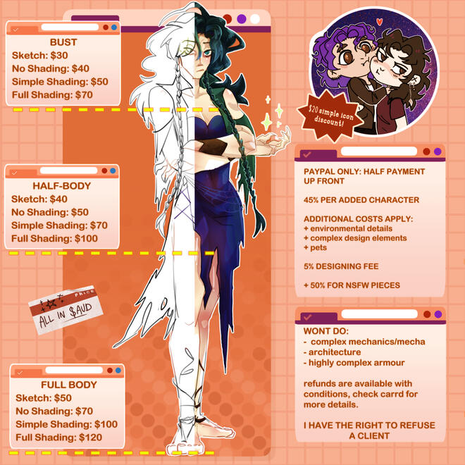 hello i'm eraelias, you can call me any variation of the username but most go with elias. I am a 24 year old self taught artist based in brisbane, australia. ive been drawing for roughly 9 years now and specialize in character art. I am currently available to commission.
